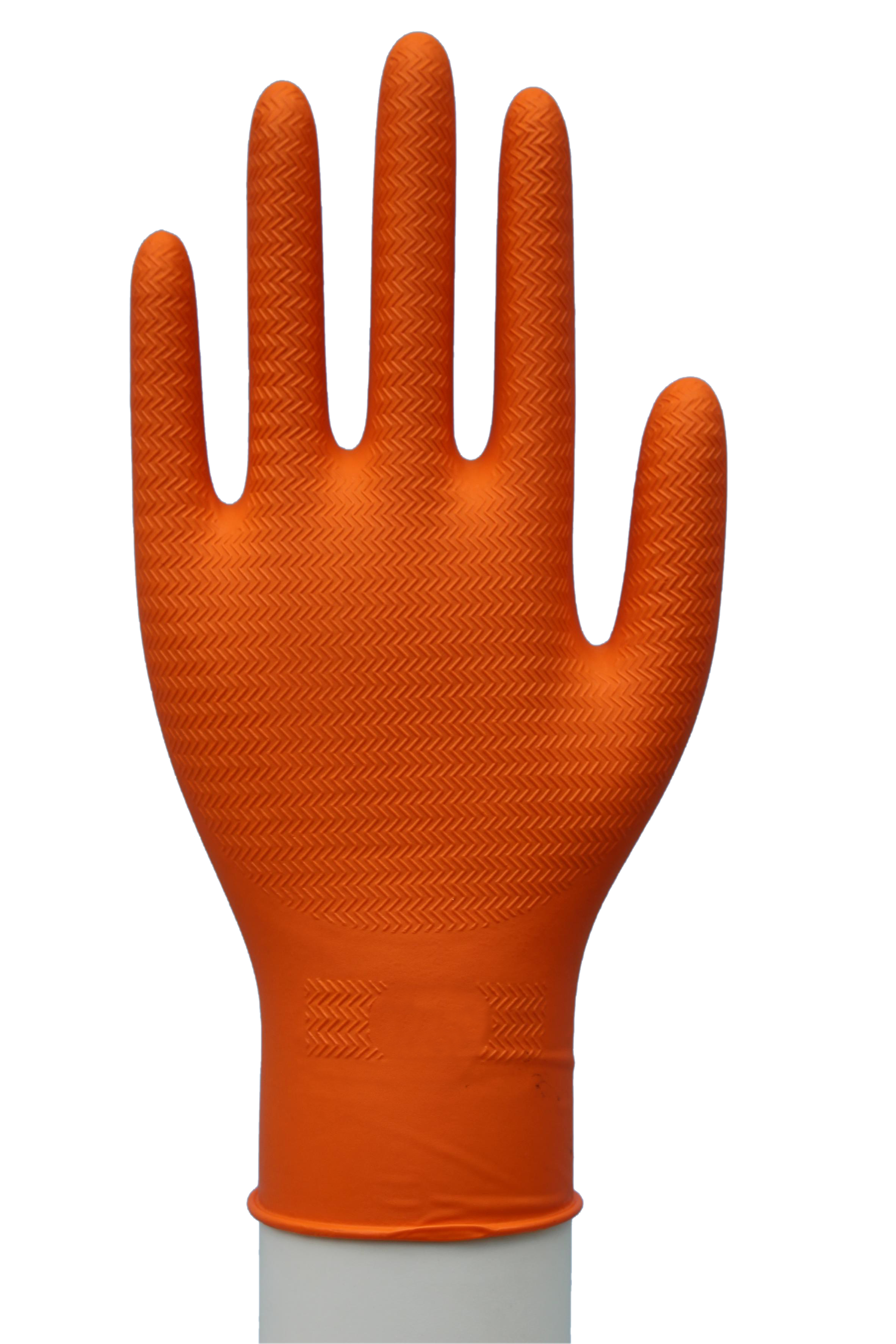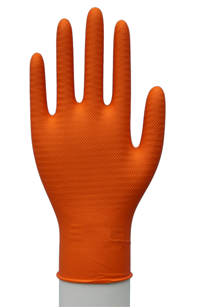 Orange Gripper® is the new orange nitrile, disposable glove with tyre tread that provides amazing slip protection in wet conditions. A 0/18mm (7 mil) glove with 1.5 AQL protection, Orange Gripper® gives ultimate hand protection from various chemicals, dirt and grease.